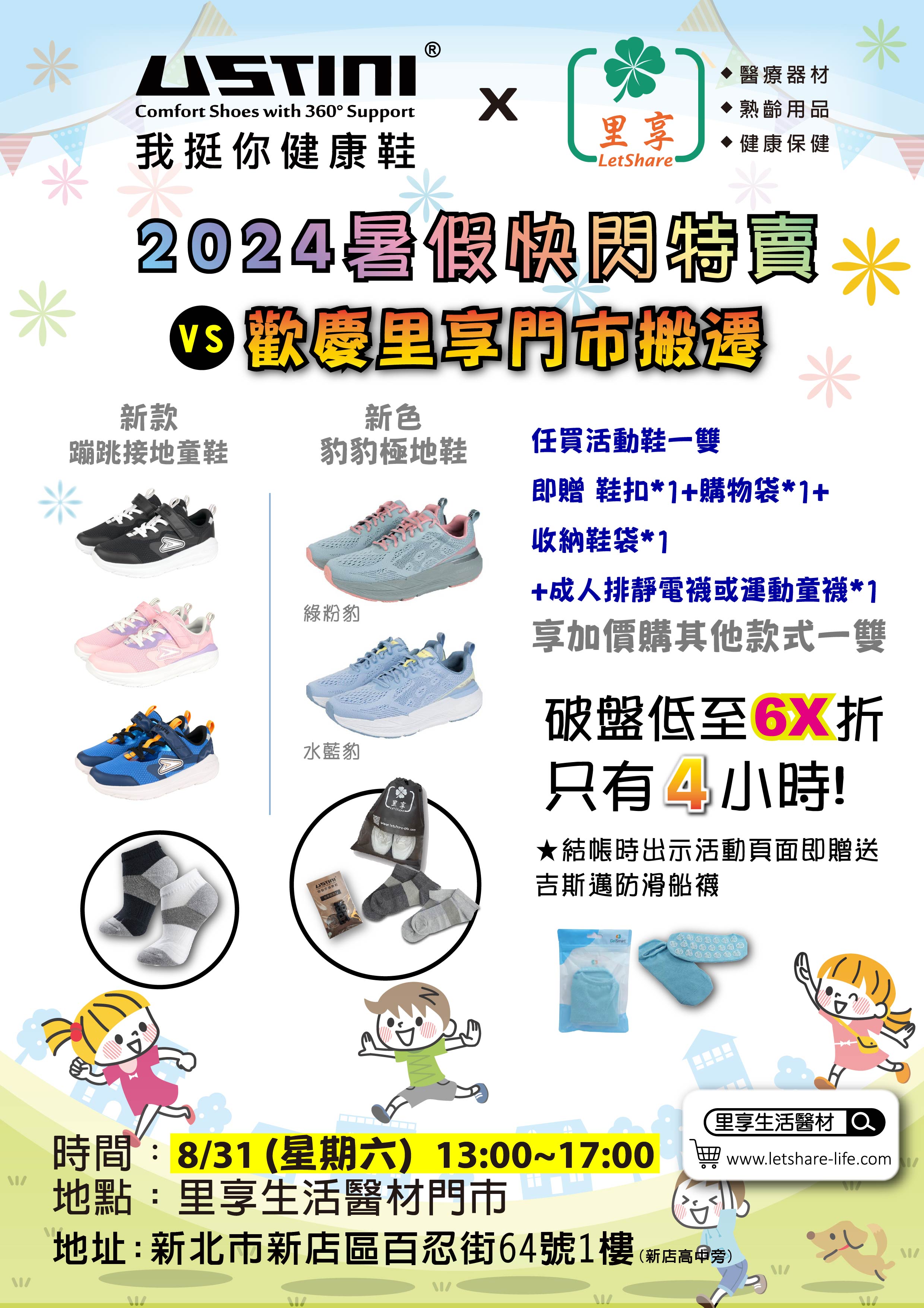 USTINI我挺你健康鞋X里享生活醫材 www.letshare-life.com 暑期新品快閃活動