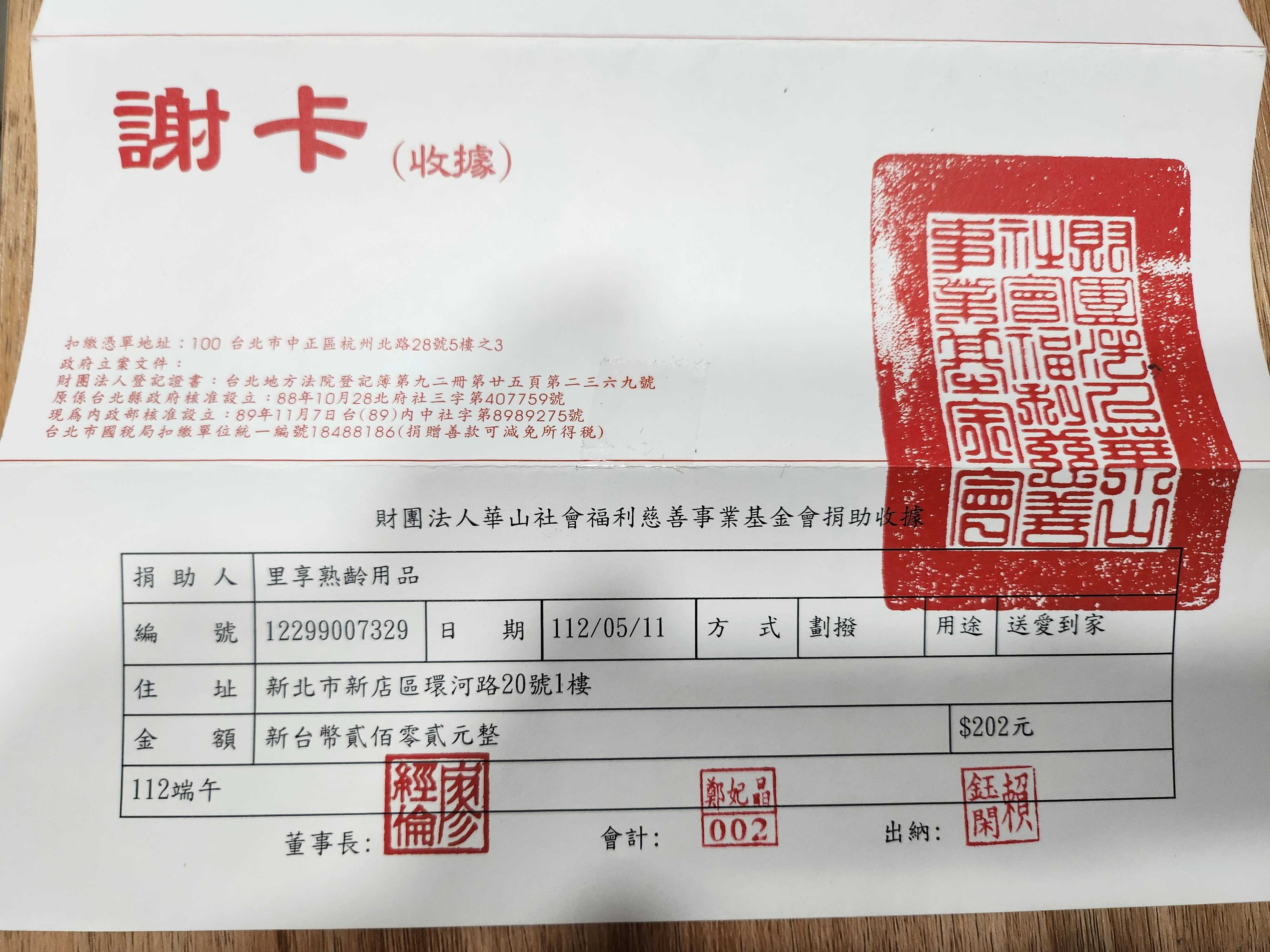 感謝大家捐贈的發票及店內的零錢筒(華山基金會)