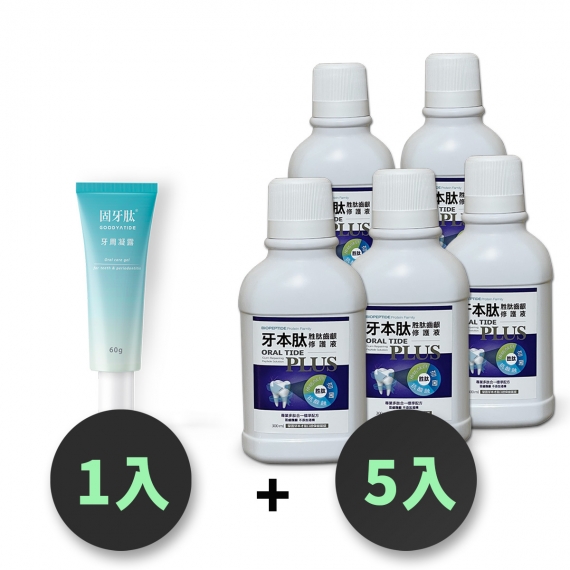 固牙肽 牙周凝露 60g-1入+牙本肽PLUS 漱口水300ml-5入 台灣製 口腔保健組合 牙齦護理 專利胜肽+SGS檢驗安全成分 GMP工廠生產 產品責任險保障