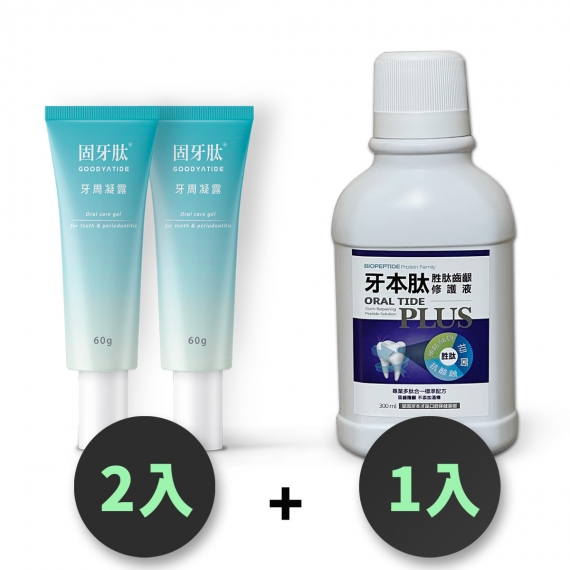 固牙肽 牙周凝露 60g-1入+牙本肽PLUS 漱口水 300ml-1入 台灣製 口腔保健組合 牙齦護理 專利胜肽+SGS檢驗安全成分 GMP工廠生產 產品責任險保障