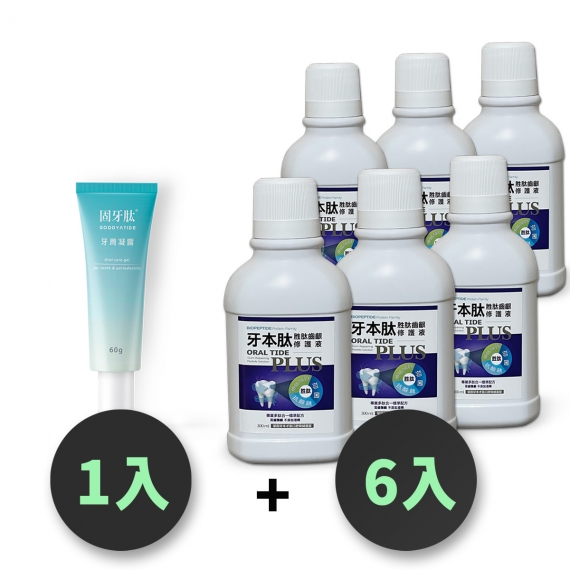 固牙肽 牙周凝露 60g-1入+牙本肽PLUS 漱口水300ml-6入 台灣製 口腔保健組合 牙齦護理 專利胜肽+SGS檢驗安全成分 GMP工廠生產 產品責任險保障