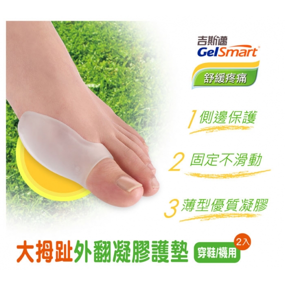 Gelsmart 吉斯邁 大拇趾外翻雙效凝膠護墊(鞋襪兩用)-2入