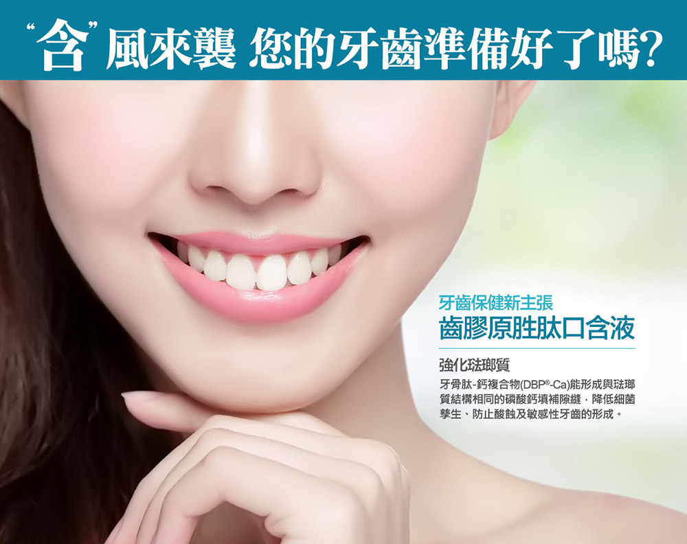能協同牙周組織膠原蛋白作用,使牙齦充滿彈力與張力,全面性的修護及保護牙齦健康。