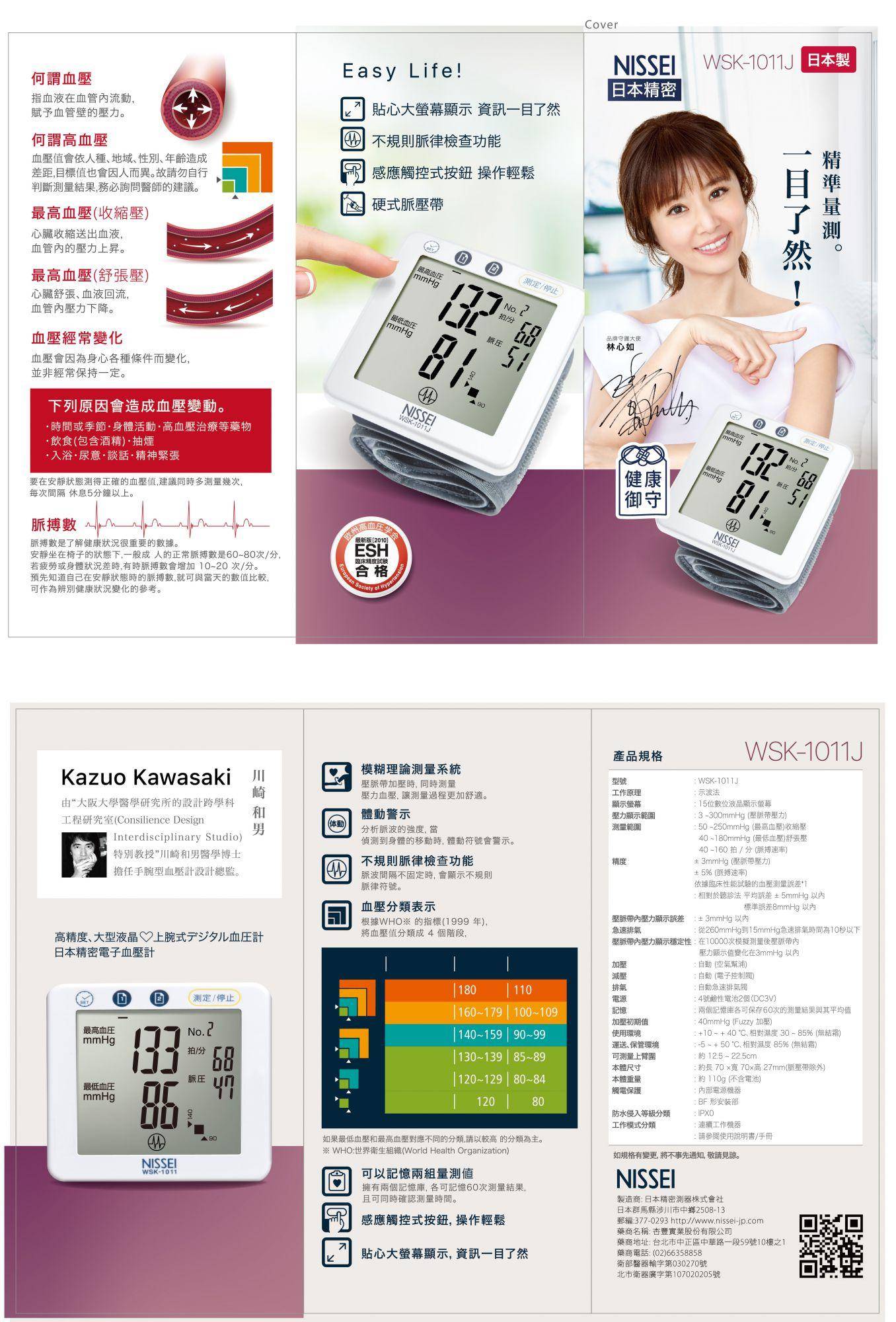 NISSEI 日本精密 手腕式血壓計- WSK-1011J